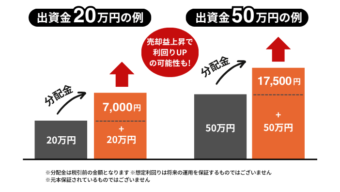 配当原資はキャピタル(売却益)のため、想定を超えた売却益が出た場合、想定利回りより配当が上がる可能性があります。