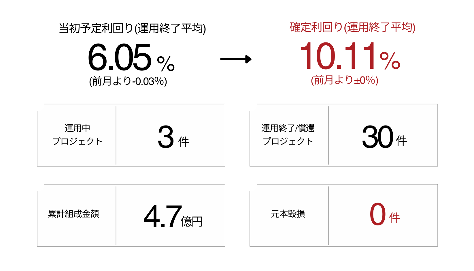 今後も、インカム型プロジェクトにおいて資産価値向上の可能性を丁寧に見極めながら、投資家の皆様が将来の展開をイメージしやすいプロジェクトの組成・運用を行うとともに、安心してご参加いただけるよう、情報開示の充実に努めてまいります。